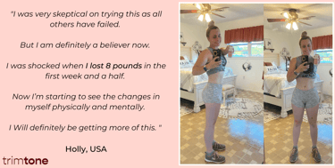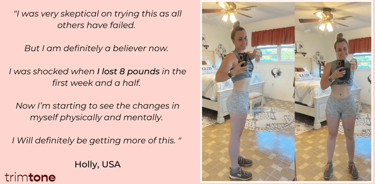 These testimonials are just a few examples of how Trimtone has helped women achieve their weight loss goals and feel more confident in their bodies. Real people, real results!